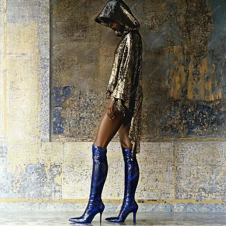 - رنگ های متالیک: رنگ های متالیک روشن و چشم نواز جایگاه مهمی در مد زمستانی 2025 دارند..رنگ هایی مانند طلایی، نقره ای و برنزی به خصوص در کفش ها برجسته خواهند شد.